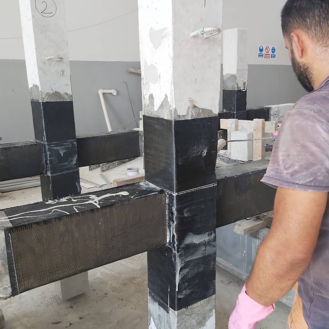 Karbon fiber ile kolon ve kiriş güçlendirme çalışmaları, Betonarme yapı güçlendirme ve beton delme kesme işlemleri.